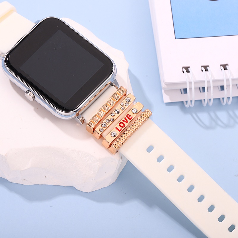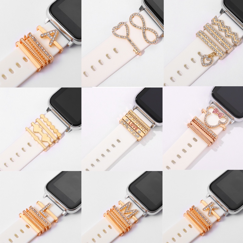 Watchband Set Letter Heart Pendant Silicone Band Decorative Jewelry Iwatch